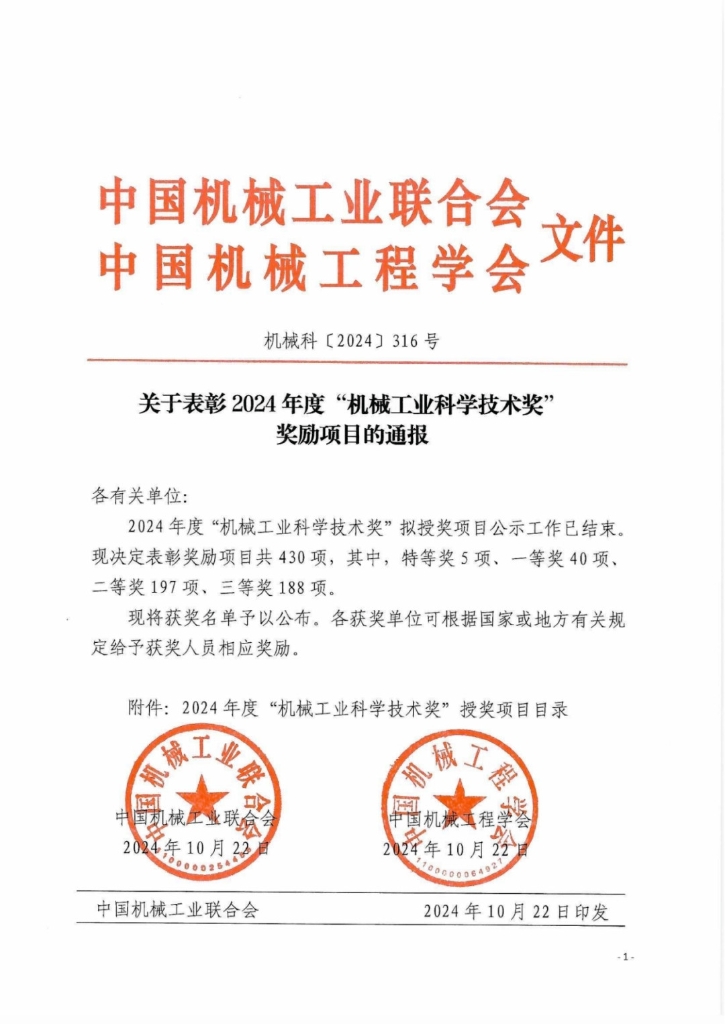 克日,中国机械工业联合会、中国机械工程学会宣布“2024年度中国机械工业科学手艺奖”获奖名单,尊龙凯时模具申报的项目“汽车传感器壳体模具成形集成自动生产手艺研发及应用”荣获三等奖。